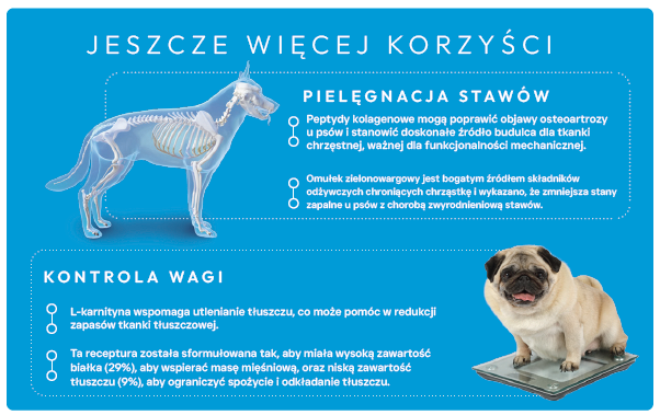 Utrzymanie prawidłowej masy ciała jest kluczowe dla długoterminowego zdrowia psa. Szacuje się, że nawet do 65% psów ma nadwagę lub otyłość. Zbyt wysoka masa ciała może zwiększać ryzyko chorób, obciążać stawy, skracać długość życia oraz obniżać jego jakość.
