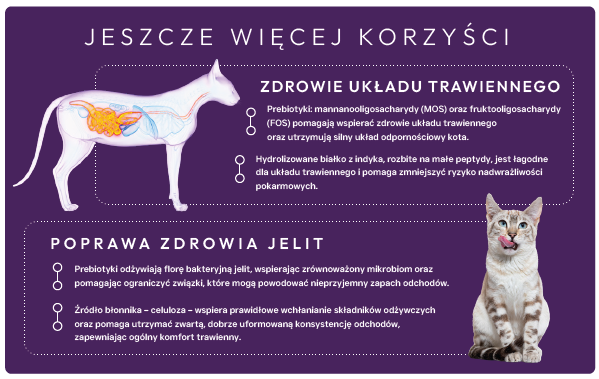 Jako bezwzględni mięsożercy, koty są zależne od diety bogatej w białko pochodzenia zwierzęcego. Ich przewód pokarmowy jest przystosowany do efektywnego trawienia białka oraz wchłaniania kluczowych składników odżywczych, takich jak tauryna i niezbędne kwasy tłuszczowe, które wspierają metabolizm energetyczny, utrzymanie masy mięśniowej, wzrok oraz prawidłowe funkcjonowanie serca.